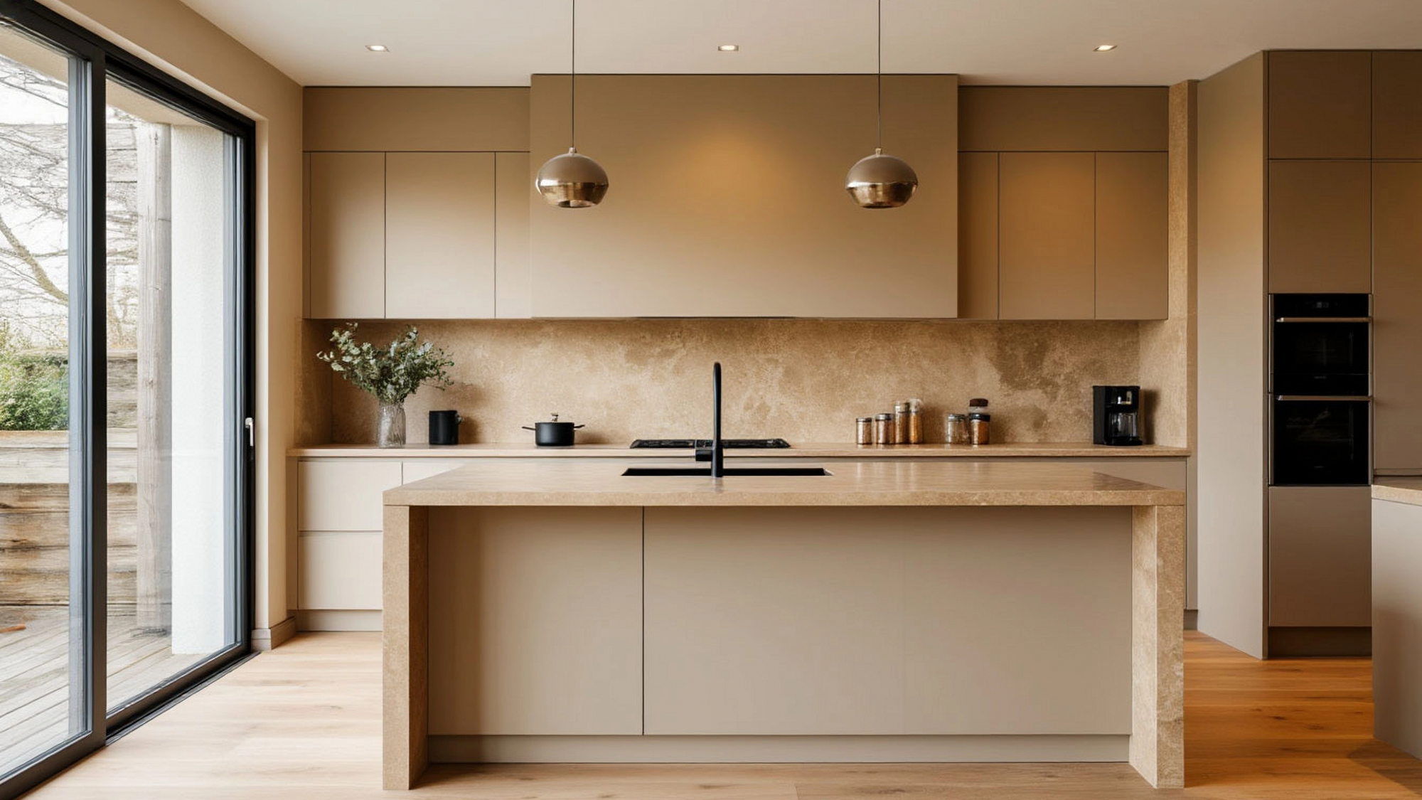 Особую роль играет сочетание цвета и фактуры. Беж в интерьере может быть разным — холодным, сероватым, тёплым, песочным, сливочным. В “Эвори” он живой, чуть тёплый, словно подсвеченный солнцем. Его легко сочетать с деревом, стеклом, камнем или чёрными металлическими элементами. Благодаря этому кухня становится универсальной платформой для индивидуальных акцентов — вы можете добавить контрастную столешницу, медные ручки, керамические светильники или мягкие кресла. "Эвори" примет всё, что добавит ей индивидуальности, не нарушив при этом общей гармонии.