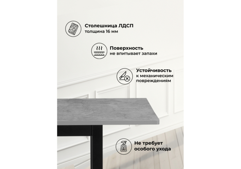 Стол деревянный Аркон 110(130)х68х75 бетон / черный (68x75).