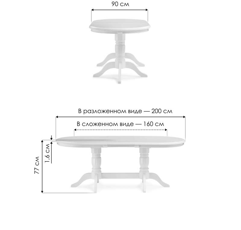 Длина стола в разложенном виде: 200 см.