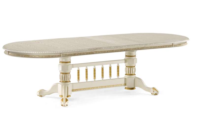 Обеденный стол Кантри 200(280)х107х79 слоновая кость / патина золото (107x79).