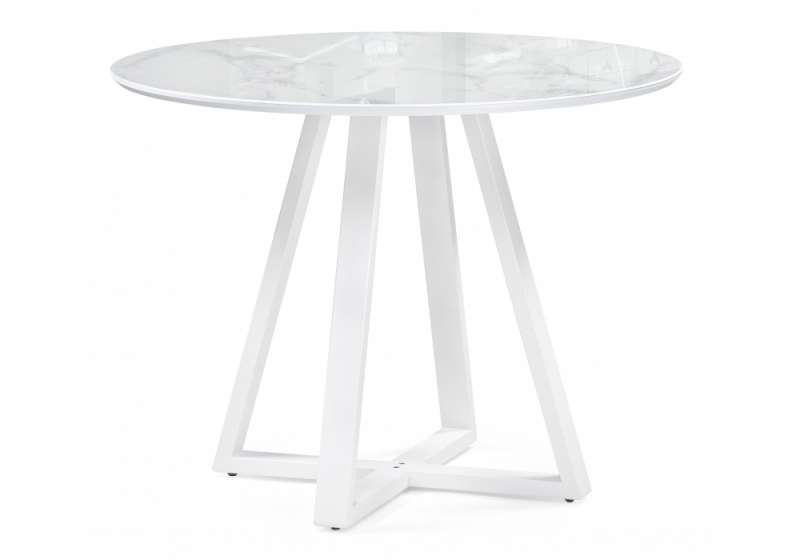 Стол стеклянный Норфолк 100 белый мрамор / белый (100x78)