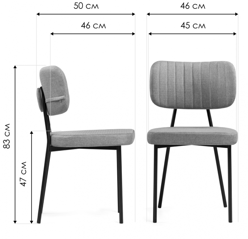Стул на металлокаркасе Вакао серый / черный (46x50x83).